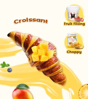 - Sau khi đã hoàn thành cán bánh và ủ bột thì tiến hành cán thêm lần cuối và cán mảnh còn 0.5cm. Cắt miếng bột thành những hình chữ nhật dài và cắt thành hình tam giác. Cuộn miếng bột tam giác cùng nhân Fruit Filling cho đến khi tạo thành hình sừng bò.